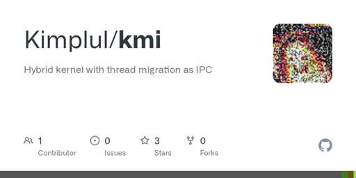 arrow-up11arrow-down1external-linkGitHub - Kimplul/kmi: Hybrid kernel with thread migration as IPCplus-squaregithub.comKimplul@programming.devEnglish · 2 months agomessage-square0linkfedilink