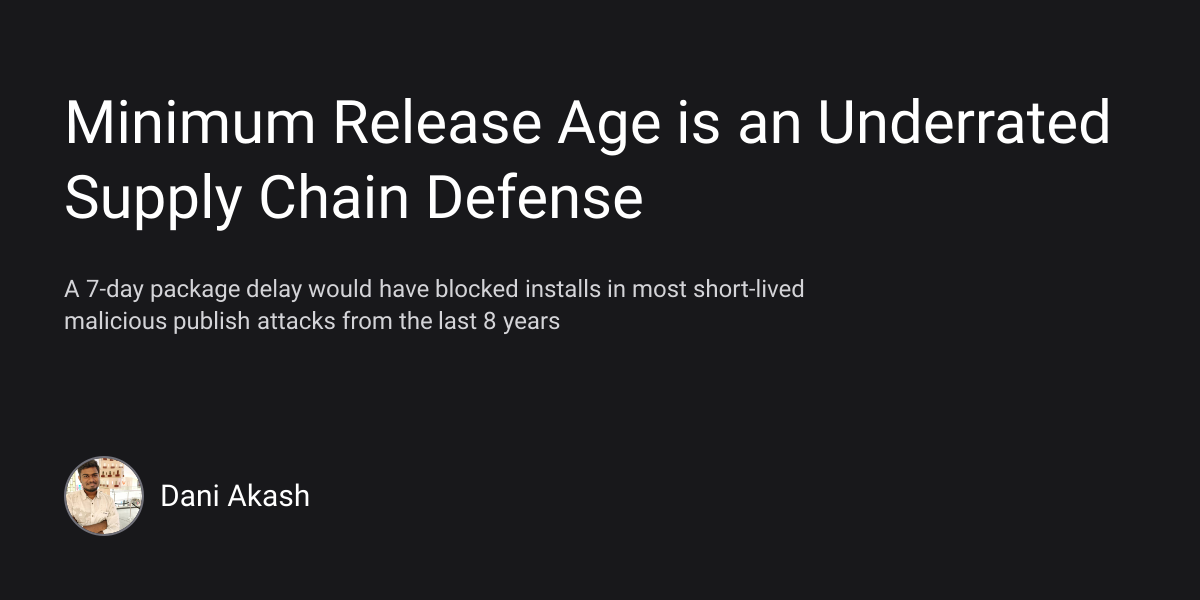 arrow-up11arrow-down1external-linkMinimum Release Age is an Underrated Supply Chain Defenseplus-squaredaniakash.comcodeinabox@programming.devEnglish · 19 days agomessage-square0linkfedilink
