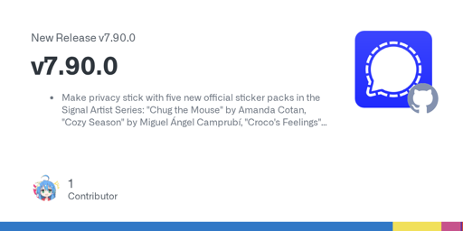 steam_lover@sh.itjust.worksBEnglish · edit-22 months agoSignal desktop release v7.90.0plus-squaregithub.comexternal-linkmessage-square0linkfedilinkarrow-up11arrow-down10