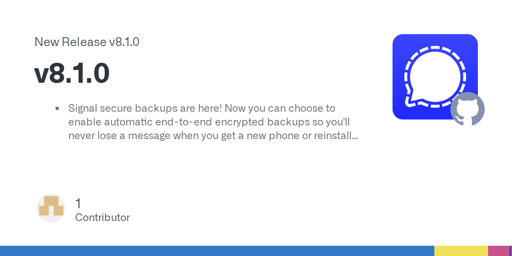 steam_lover@sh.itjust.worksBEnglish · 2 months agoSignal desktop release v8.1.0plus-squaregithub.comexternal-linkmessage-square0linkfedilinkarrow-up11arrow-down10