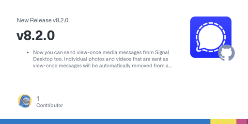 steam_lover@sh.itjust.worksBEnglish · 1 month agoSignal desktop release v8.3.0plus-squaregithub.comexternal-linkmessage-square0linkfedilinkarrow-up11arrow-down10