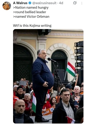 “I’ve come to make an announcement: the EU is a bitch-ass motherfucker. They pissed on my fucking wife. That’s right: they took their Brussels fucking bureaucratic dick out, and they pissed on my fucking wife. And they said their dick was ‘T H I S B I G’, and I said ‘That’s disgusting!’ So I’m making a callout post on my kormany dot hu: European Union, you got a small dick. It’s the size of Andorra except way smaller. And guess what? Here’s what my dong looks like! PWOOOOOSH [cut to the Austria-Hungary 1914 borders]”