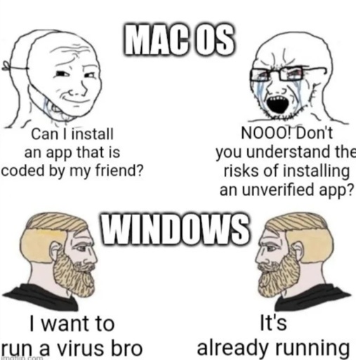 I can tell this meme is old because windows does the same shit MacOS does now and has been since at least Windows 10