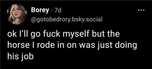 Track_Shovel@slrpnk.net to Microblog Memes@lemmy.worldEnglish · 5 days agoHorseslrpnk.netimagemessage-square2linkfedilinkarrow-up125arrow-down10