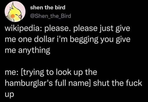 real talk tho, donate to Wikipedia if you use it. just do it.