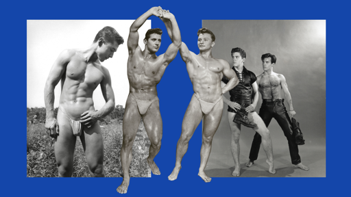 The ’50s marked the heyday of so-called “physique” or “beefcake” magazines, some of the horniest documents in queer history. Photographers like Bob Mizer, founder of the iconic Physique Pictorial, published thousands of pages of nearly naked male bodies. Flick through the pages and you could expect to see homoerotic poses featuring sailors and cowboys, bulges straining through skimpy briefs and an occasional sprinkling of oiled-up grappling. The beefcake phenomenon wasn’t unique to the U.S. In Montreal, famed photographer Alan B. Stone turned his lens on Canada’s sexiest men, selling his beefcake prints via mail order. His risqué images were advertised in the back pages of publications like Physique Pictorial; naturally, they arrived in discreet packaging. In a world before mainstream videos of hardcore gay porn, these magazines obviously made their way into many a suburban gay spank bank, but they offered more than just eye candy.