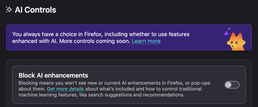 Settings > AI Controls > Block AI enhancements. Do it now, because they won’t do it for you.